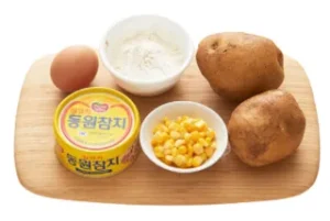 • ①のジャガイモに塩コショウで味をつける。ツナとスイートコーンも入れて混ぜ合わせる。